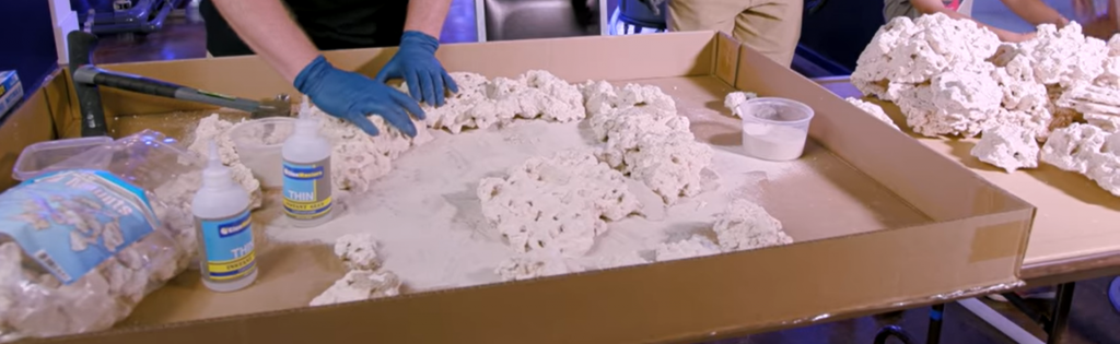 I’m certain it is lost on no one that I’ve been procrastinating on this SPS show tank build. What we wanted to try was a technique I saw online where an aquascape could be made using super glue and sand. This guy was tossing sand or finely crushed rock powder in the gap between rocks and then using a little bit of liquid super glue to solidify it. By repeating this process it would build a strong bond between the two rocks. Using this method he created some really cool aquascapes. My first thought was that this would be a major pain but boy was I wrong. THIS IS AWESOME! Once we are happy building out the structures, I plan to soak them in RO for a few days and then introduce them into the show tanks. Hopefully the next time you see our setup here we will have the foundation of our SPS system all done!