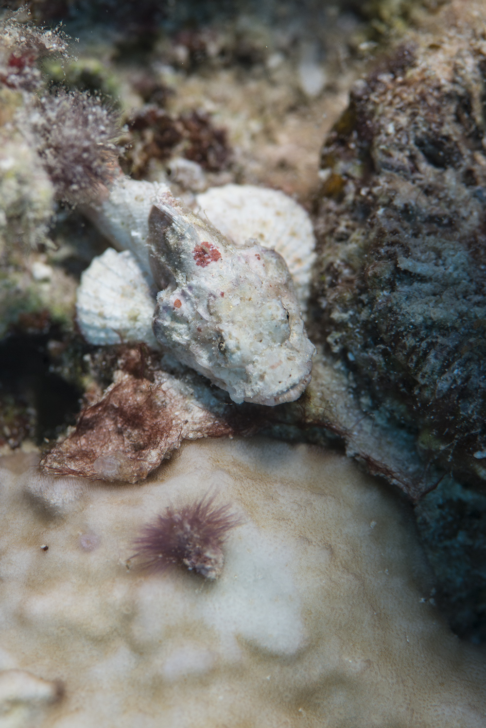 Even as youngsters Scorpaeniformes are hard to find. This tiny specimen, only a few centimeters long, would be very hard to spot amongst coral rubble.