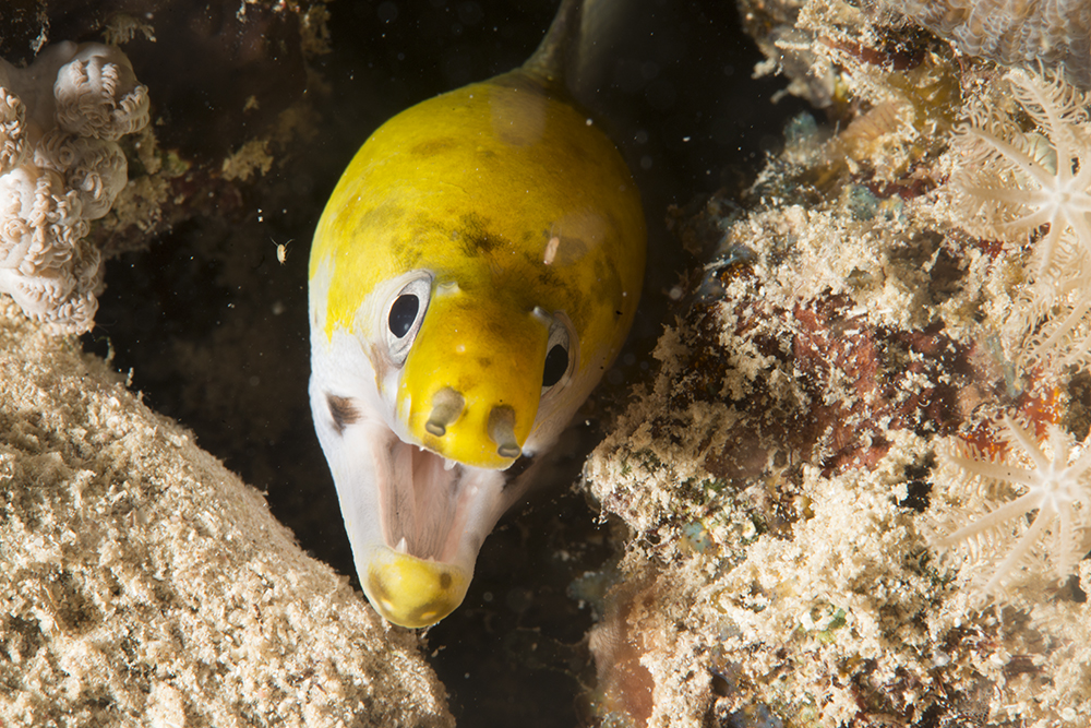 Whilst I’m not a fan of morays, you can sometimes get a nice image of one. Gymnothorax javanicus
