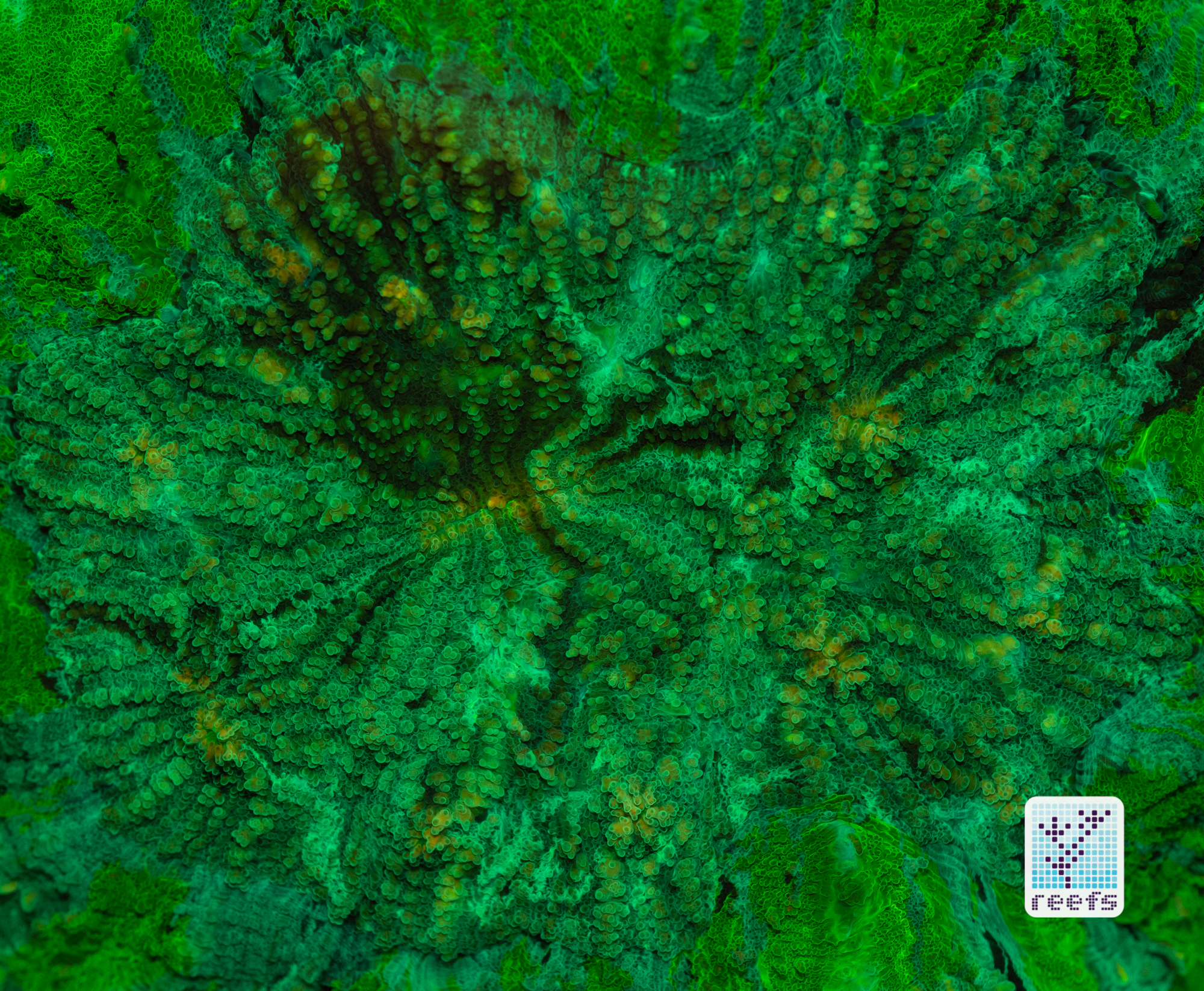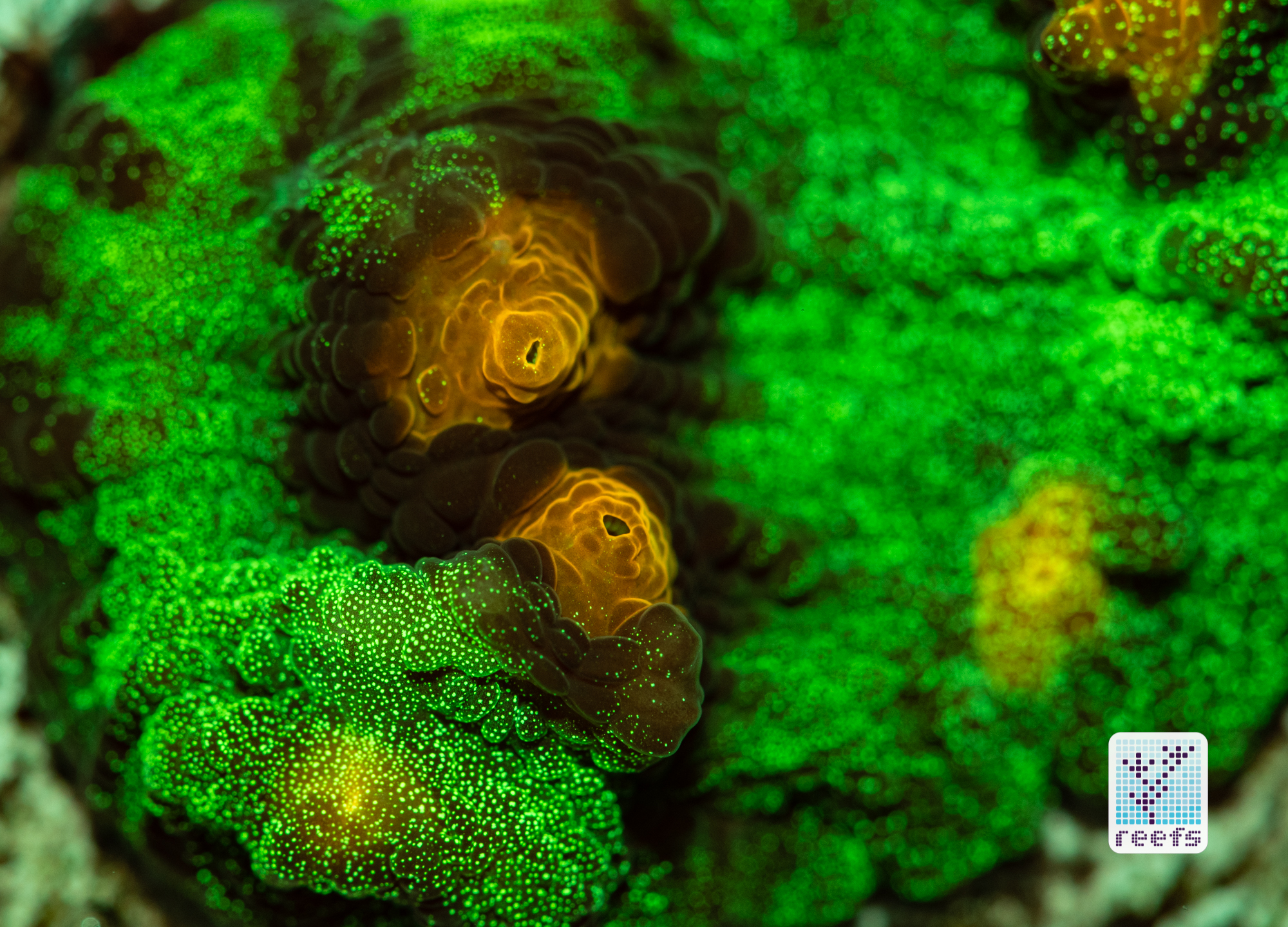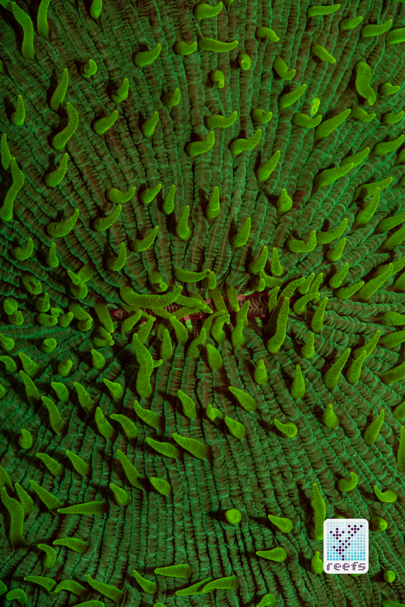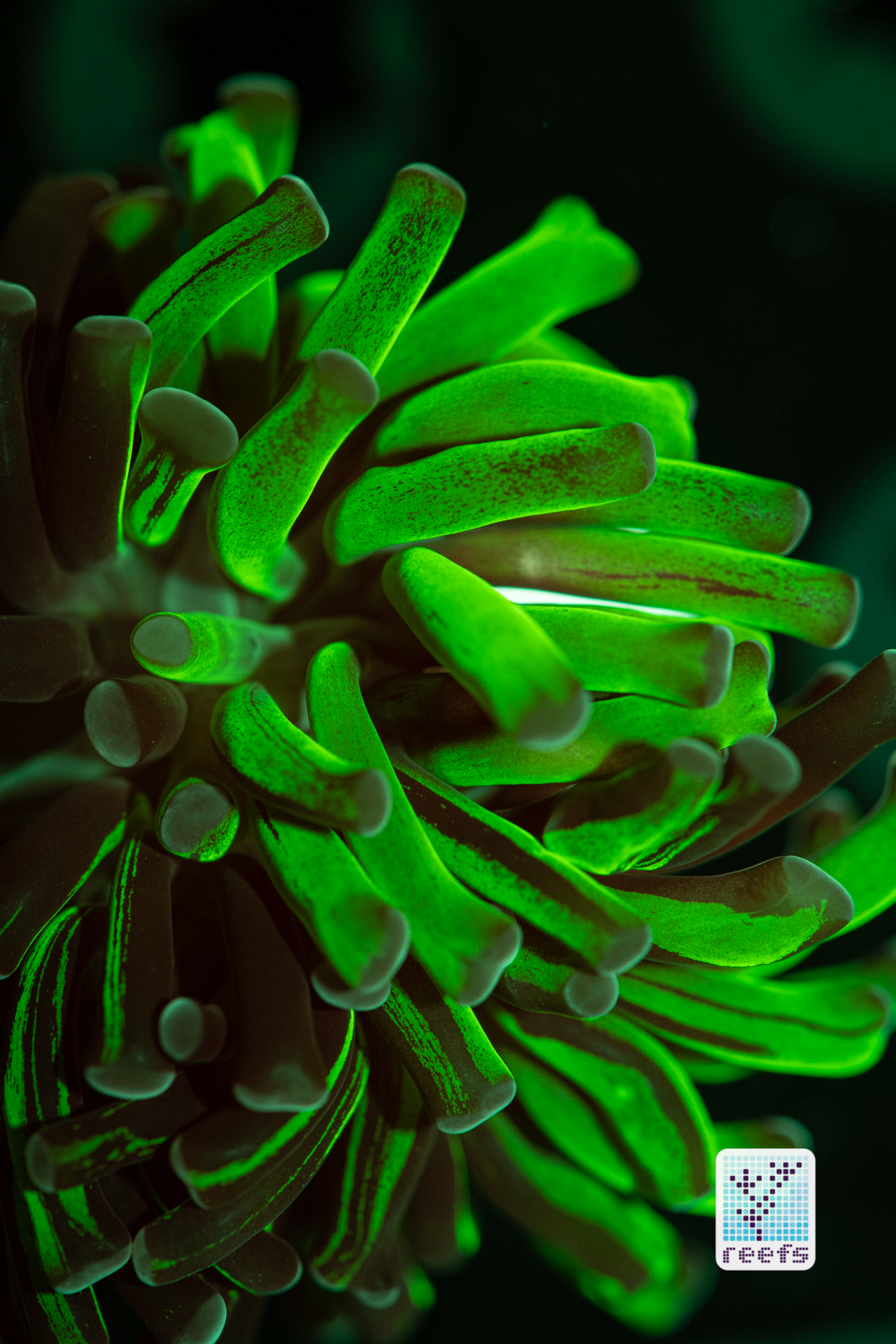 Fluorescence is a temporary show and to reenact it, one needs a source of UV or near-UV light to see the color change phenomena in its full glory. What a show it is though! Fluorescence in corals is spectacular, even more so than any other aspect corals posses. It occurs in various glowing shades of green, yellow, and red, at different concentrations and in different parts of the animals. When they glow, every single polyp has its own pattern that identifies it, almost like an underwater fingerprint.