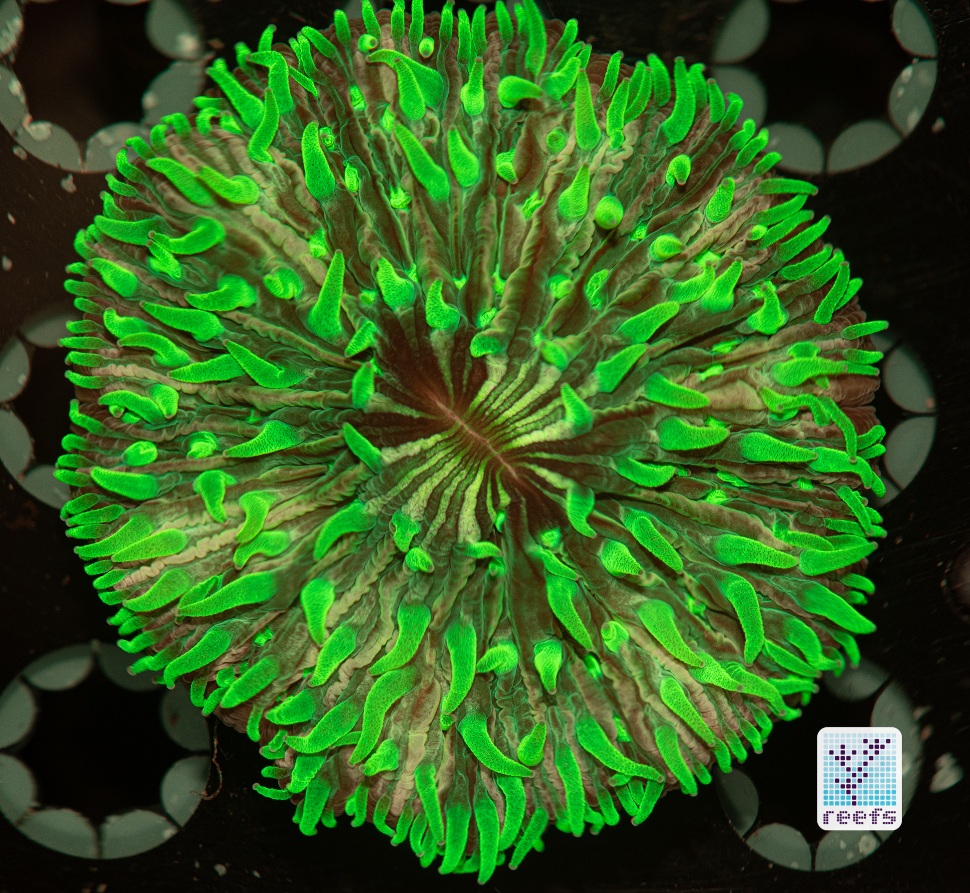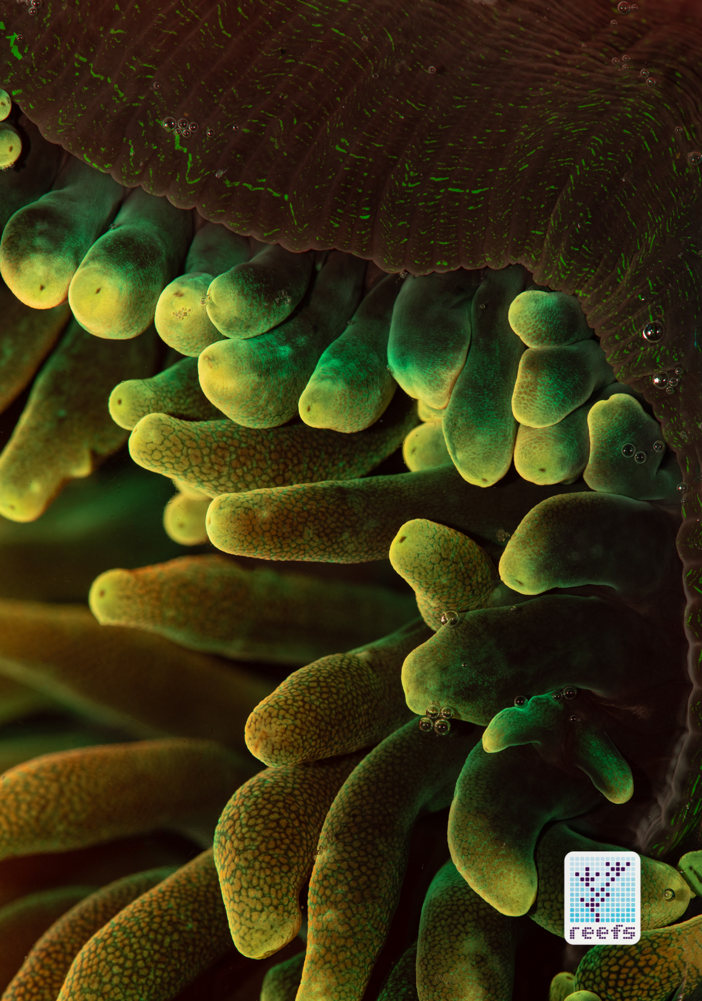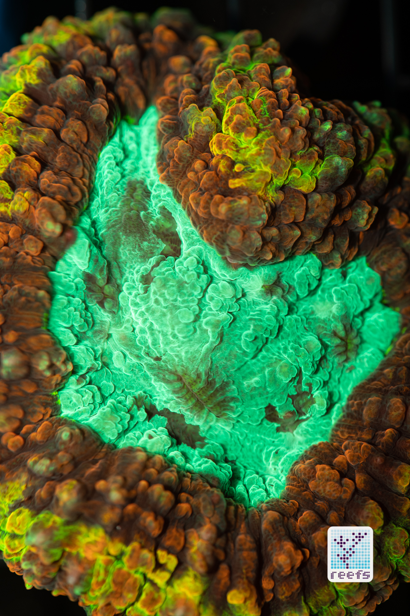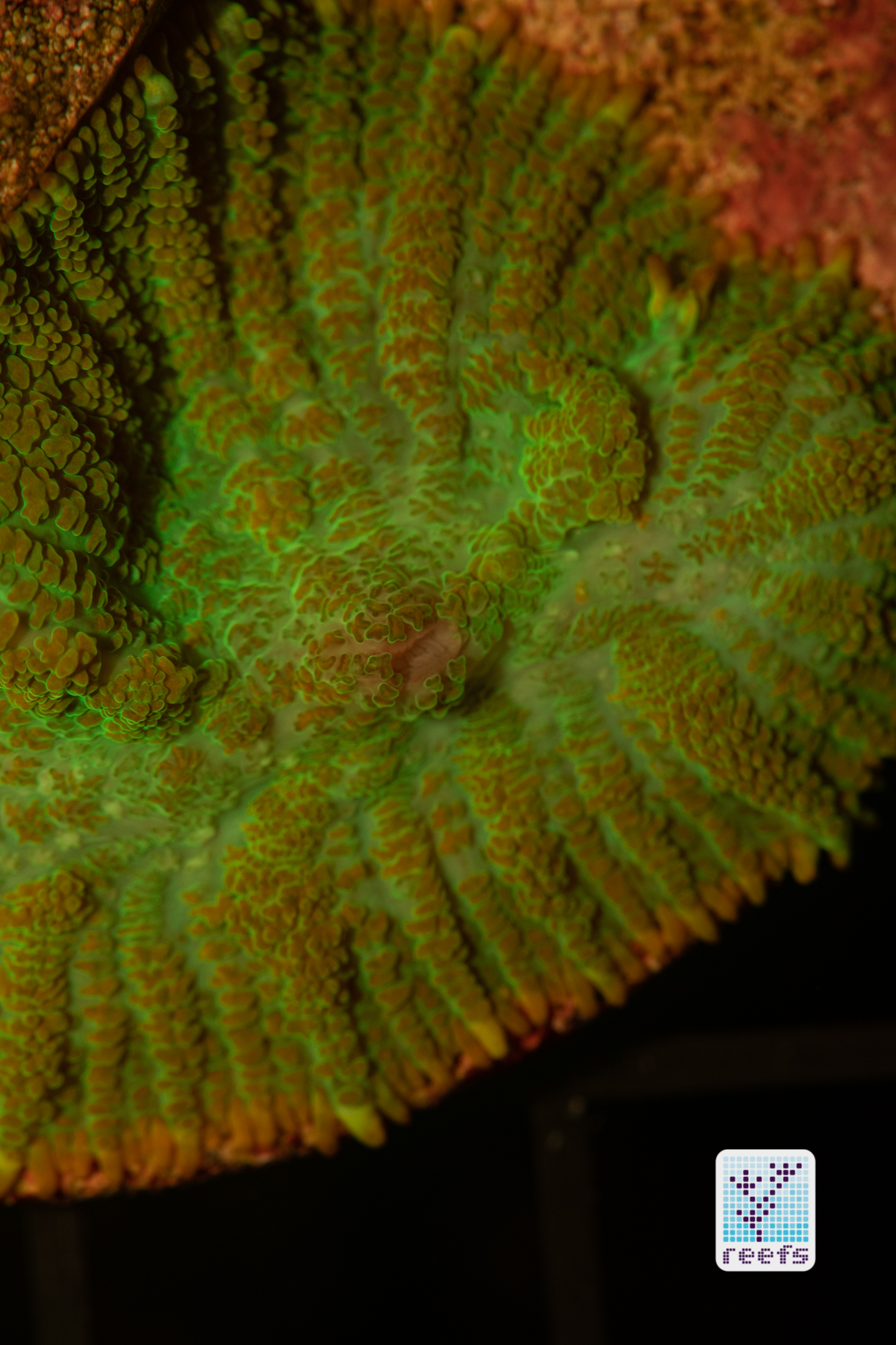 Fluorescence is a temporary show and to reenact it, one needs a source of UV or near-UV light to see the color change phenomena in its full glory. What a show it is though! Fluorescence in corals is spectacular, even more so than any other aspect corals posses. It occurs in various glowing shades of green, yellow, and red, at different concentrations and in different parts of the animals. When they glow, every single polyp has its own pattern that identifies it, almost like an underwater fingerprint.