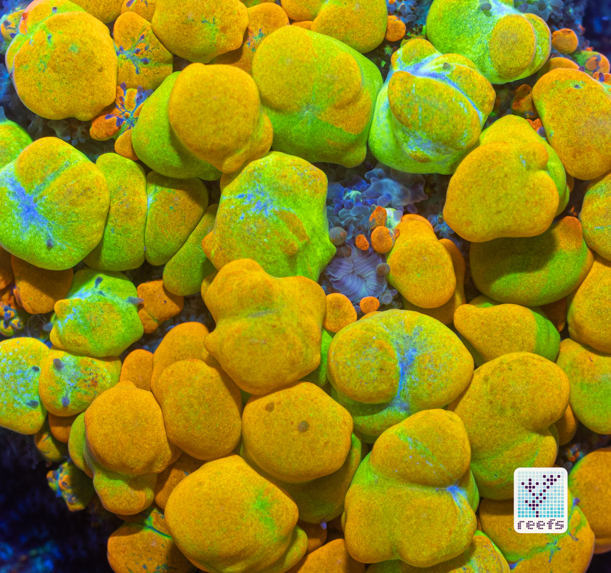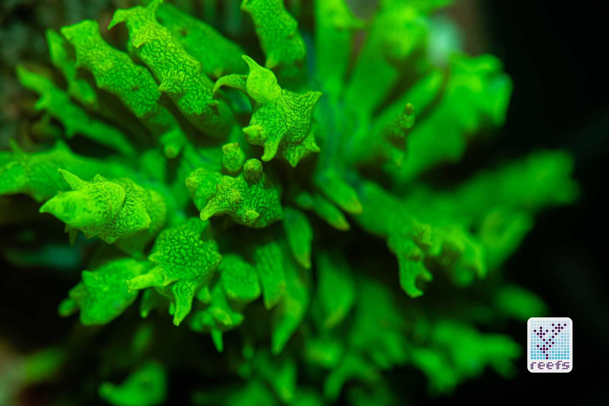 Fluorescence has little in common with bioluminescence. First of all, it is not restricted to living things- some minerals fluoresce, for example. But we reef aquarists think of fluorescence in terms of the corals and other sessile invertebrates we keep in our tanks. Corals exhibit the most eye-pleasing form of fluorescence, where high energy light from outside (or almost outside) the visible spectrum (UV or near UV) is re-emitted as visible light.