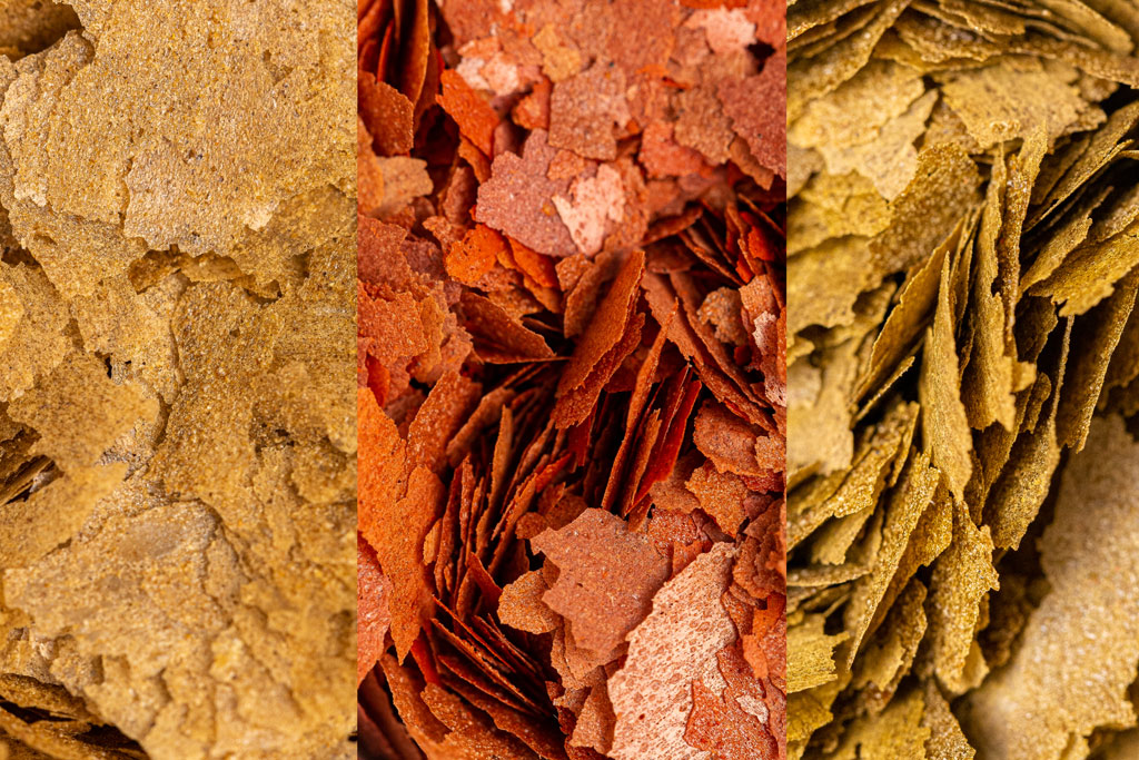 These flake feeds are the outcome of AMTRA‘s thirty years of experience. They experimented with new methodologies that are as natural as possible, and processed the food at low temperatures.
