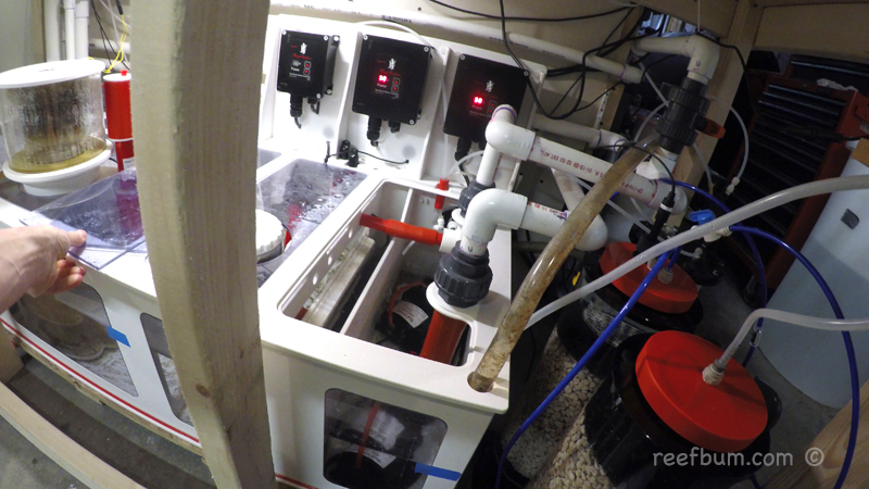 Additionally, every week I remove any gunk from the filter bags by spraying them with a short garden hose I hook up to the slop sink. Weekly maintenance is also performed on the Pax Bellum ARID algae reactor. Film inside the reactor is wiped off and the chaeto is rinsed in fresh tank water to remove any biofilm.