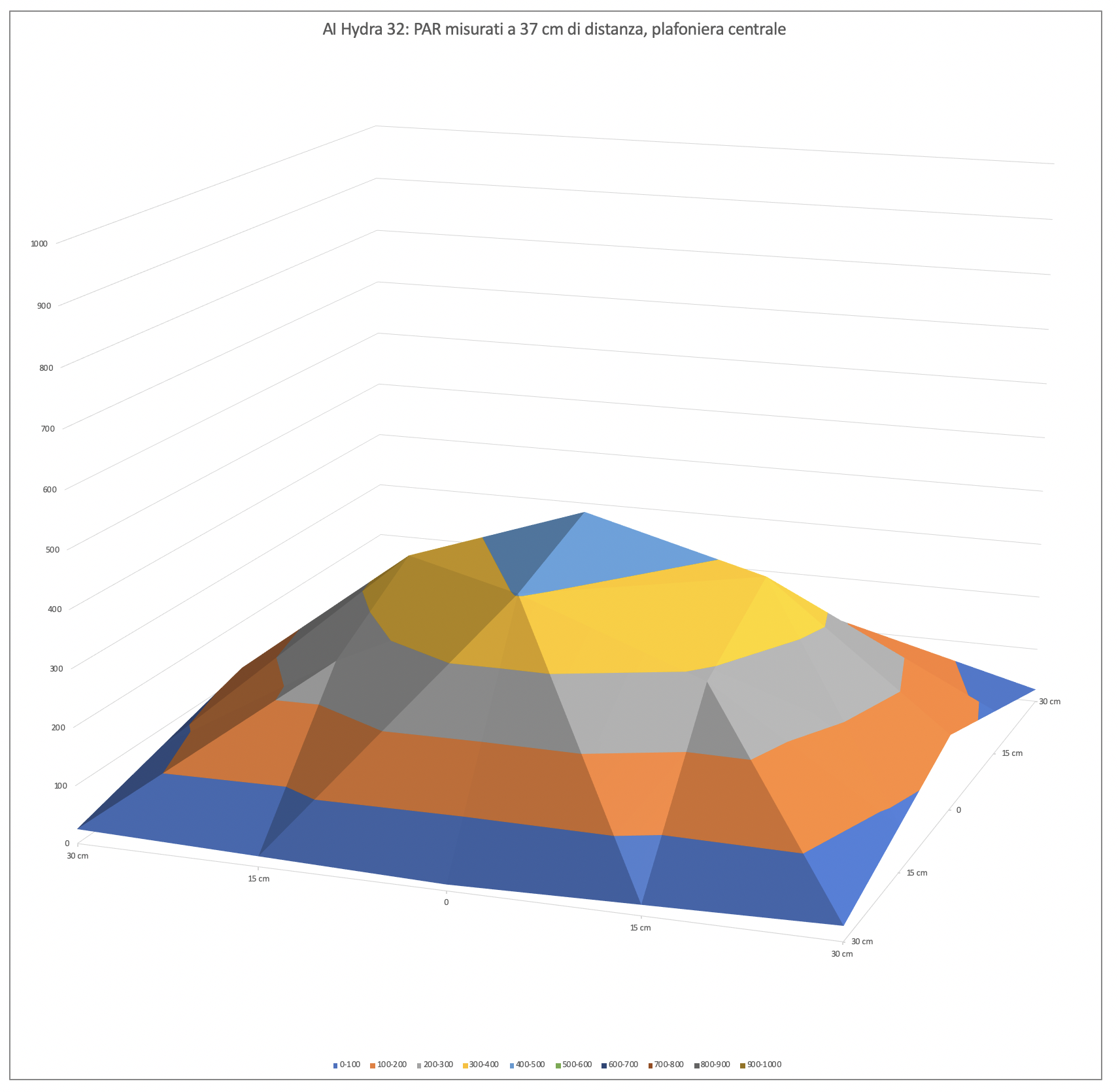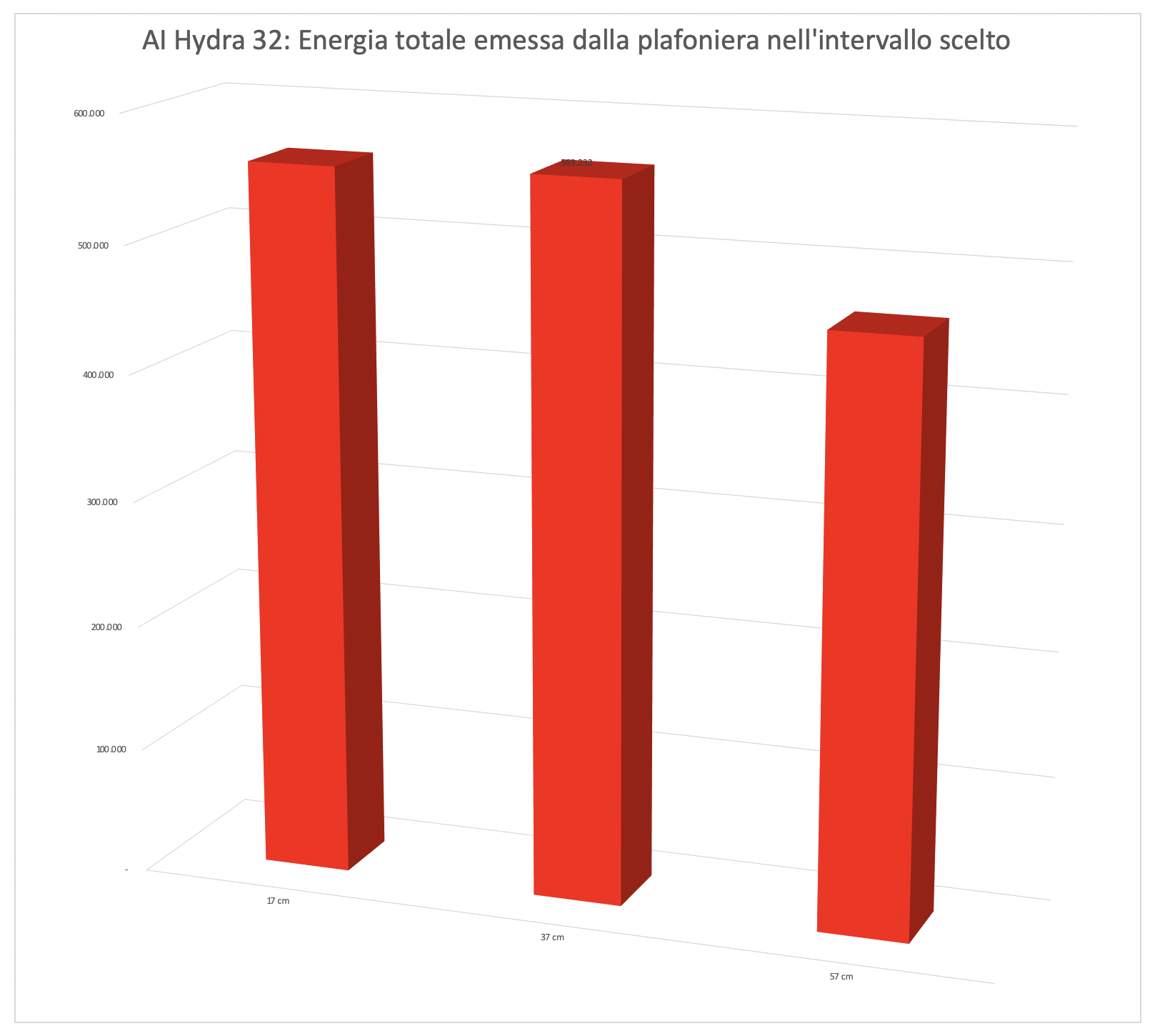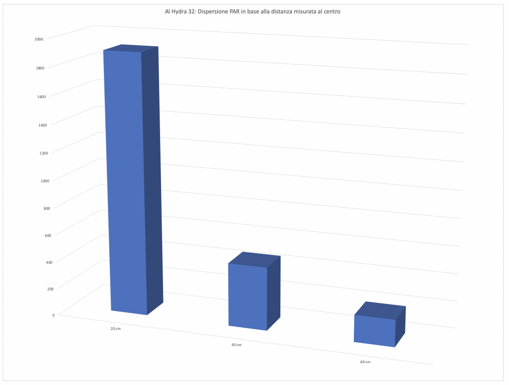 The AI Hydra 32 HD has a very low value of euro per PAR, passed only by the Cetus 2. The efficiency is the highest. It’s one of the most efficient ceiling lights, and for 430 euro it’s hard to ask for more.