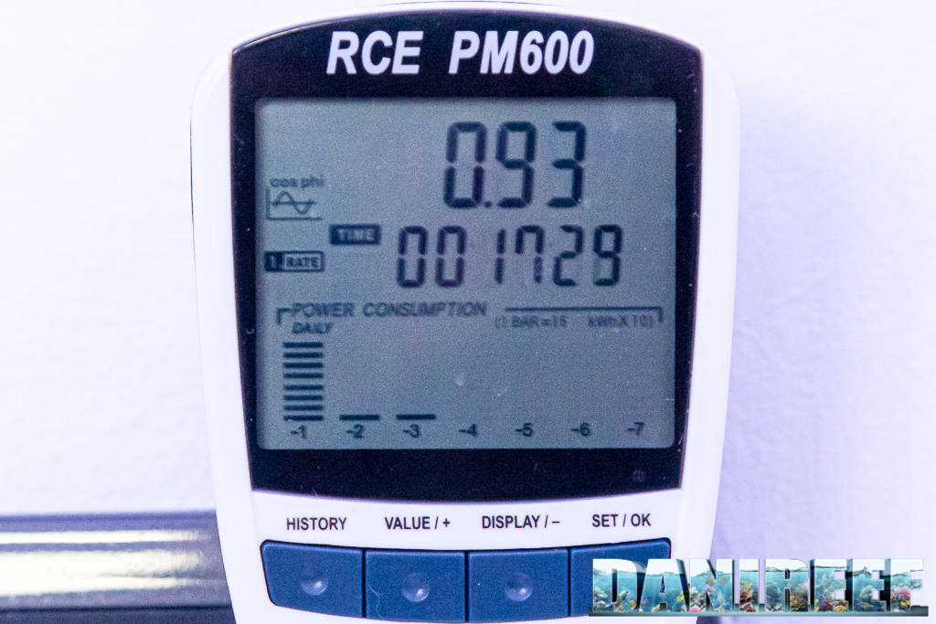 The measurement of the consumption was made possible thanks to the useful RCE PM600 that can also measure the Cos(fi) (or power factor). The result is already given in watts.