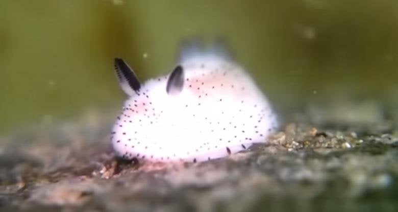 “Jorunna parva, popularly known as “sea bunny”, is a species of dorid nudibranch, a shell-less marine gastropod mollusc in the family Discodorididae. It is found along the coasts of Korea, Japan, Palau, Philippines, Indonesia, Papua New Guinea, Australia, South Africa, Seychelles, and Tanzania. The resemblance of Jorunna parva’s rhinophores to a rabbit’s ears and its other features facilitated a surge in popularity on Twitter throughout Japan in 2015. The rhinophores enhance detection efficiency and allows Jorunna parva to sense its surrounding environment. The receptors allow these species to locate their mates and forage for food resources as well. Sea bunnies, like many other nudibranchs, eat sponges, which contain toxins. Those toxins are used for cancer treatments. Sea bunnies are considered to be one of 16 species in the family Discodorididae. The fur is called caryophyllidia, which is composed of fleshy protuberances called papillae, as well as spicules, which are used for sensory functions.” from https://en.wikipedia.org/wiki/Jorunna_parva